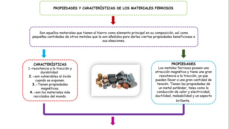 Los metales ferrosos se definen como aquellos metales que contiene hierro. Los metales no ferrosos no lo tienen. El atributo distintivo del hierro es que es denso, fuerte cuando se mezcla con carbono, abundante y fácil de refinar, altamente susceptible a la corrosión y magnético.